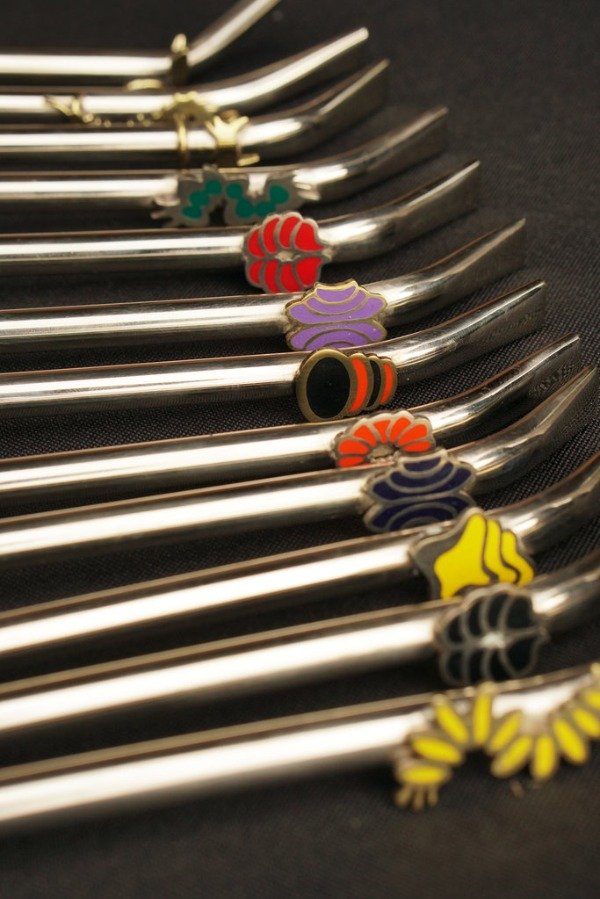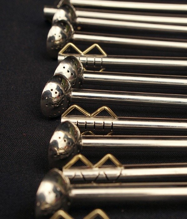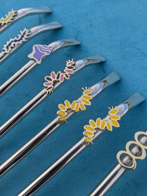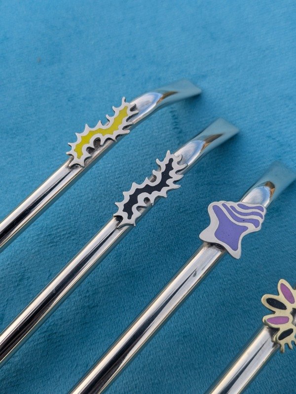 Bombillas de 16 cm de alto realizadas en alpaca, bronce y resina epoxi.